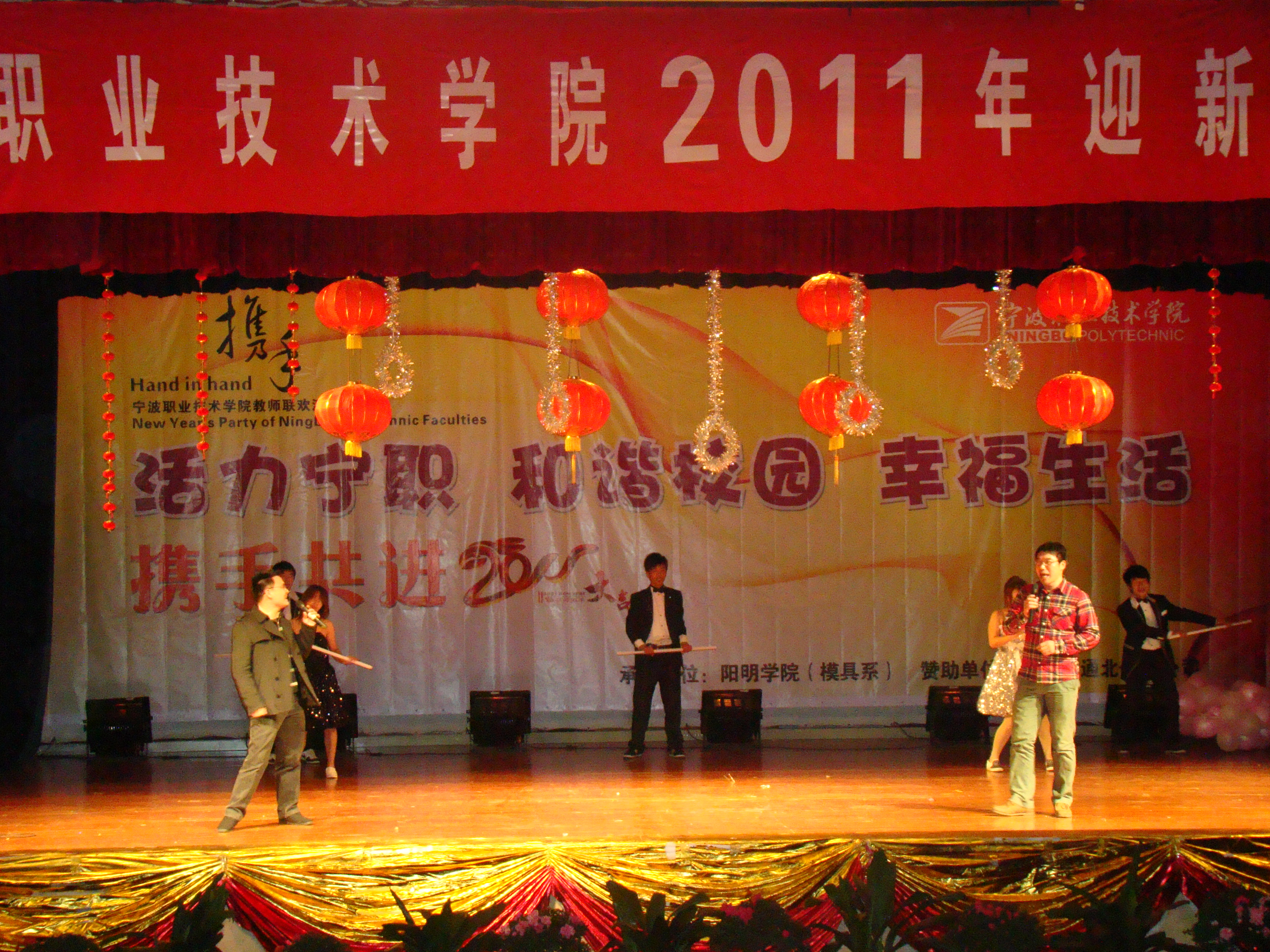 2010年12月31日下午一点三十分,宁波职业技术学院在东校区大剧院举办了“活力宁职 和谐校园 幸福生活”2011年迎新联欢会。学院领导、教师参加了联欢晚会。苏志刚院长代表学院向大会致辞,并旨意节日的问候与祝福。本次联欢会由阳明学院(模具系)承办,由中国联通北仑分公司独家赞助。