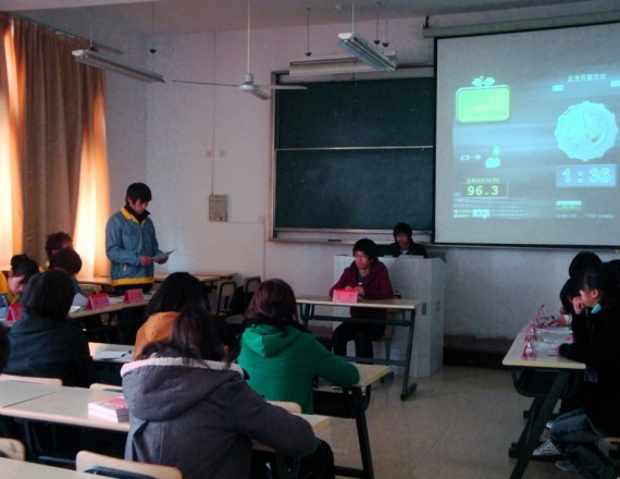 3月8日中午12:15,在东校区2#304和2#402教室同时举行了电子信息工程系“挑战杯”大学生辩论赛初赛。为展现当代大学生团队意识和个人风采,提高我院学生的逻辑思辨水平和语言表达能力,活跃学习氛围,丰富课余生活,由电子信息工程系团委主办,电子信息工程系团委学习部承办的“展现自我”――电子信息工程系“挑战杯”大学生辩论赛初赛正式拉帷幕。