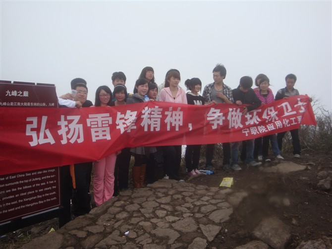 3月20日宁波职业技术学院应用化工系在团委书记童燕老师的号召下,化工系学生会主席尹伊君带领了30多名学生会干事参加了一次“弘扬雷锋精神,争做环保卫士” 的九峰山环保活动。同时此次活动也是为了更好地弘扬雷锋精神,教育和培养广大学生树立绿色环保意识。