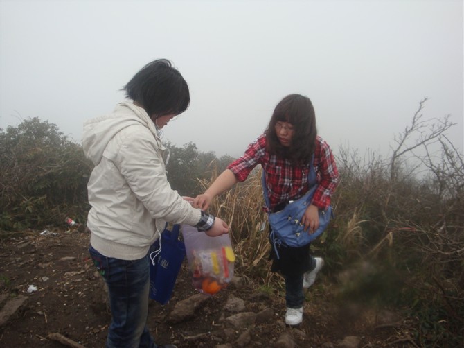 上午8点,30多名化工系学生会干事携带横幅、矿泉水向宁波北仑九峰山风景区进军。到达目的地后,大家沿着九峰山入口提着自带的环保袋开始了他们的环保之旅。其间学生会主席尹伊君充分发挥了模范带头作用,他一手拎着环保袋一手不时地捡起散落在道路边上的纸屑、水果皮等垃圾。化工系其他学生干事见到这一场景后也都纷纷加入这一行列,他们自觉地捡起垃圾或宣传环保理念。此次活动中同学们的热情高涨并充分发扬了不怕苦不怕累的精神,两个人“争抢”一处垃圾的场景时常出现。然而很多垃圾都隐藏在草丛深处,大家都面临着要既要保护植被又要清理垃圾的难题,很多同学不得不卷起衣袖来小心翼翼地清理垃圾。一些同学则在道路上拉开了“弘扬雷锋精神,争做环保卫士”的横幅,并热情主动地向过路的行人宣传低碳环保理念。甚至有一些同学将捡来满满一袋垃圾,走进垃圾箱边对垃圾进行了分类处理。路上同学们亲切的话语、灿烂的微笑、诚恳的态度还获得了无数过路的行人好评,一个游客还微笑地指出,这种活动不仅弘扬了雷锋精神,而且对九峰山的环保形象有了很好的提高,还希望同学们能经常来这里组织这样的活动。虽然天气很炎热,汗水不时的从同学们的额头上流下,个别同学们的脸上变成了“小花脸”,但每个人的脸上却都始终挂着微笑。同学们无私奉献地付诸实践行动,真不愧是新一代环保卫士!