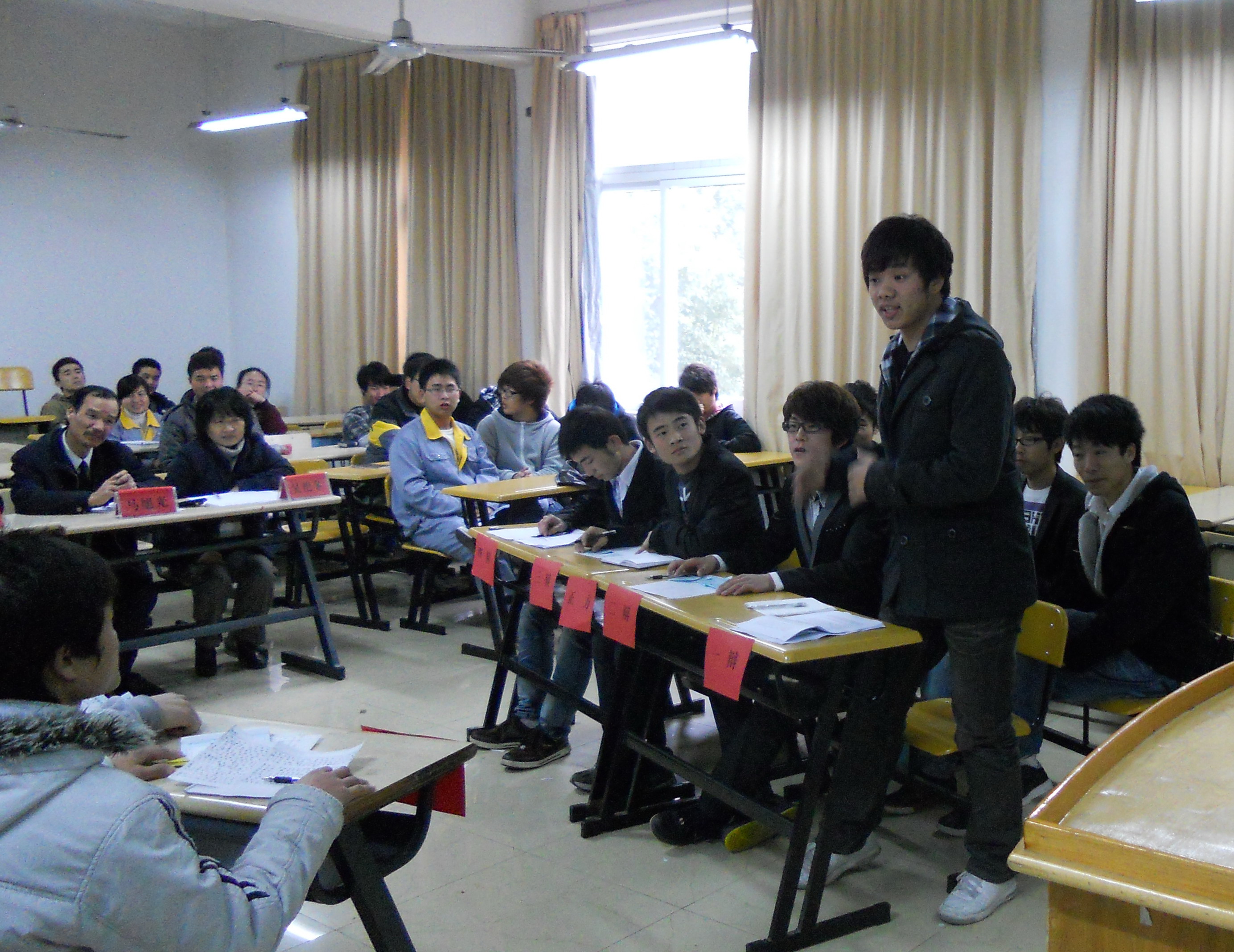 大赛继续进行,进入自由辩论环节。正方辩手们精辟的措辞,犀利的言辞,展现出咄咄逼人的气势。反方工业设计系辩手也毫不示弱。继短暂而精彩的观众提问环节后,比赛进入总结陈词环节。正反双方辩手清晰的思路和巧妙的陈词给观众留下了深刻印象。教室里响起了阵阵的掌声。接着,由观众向辩手提问环节,辩手都做出了精彩的回答。