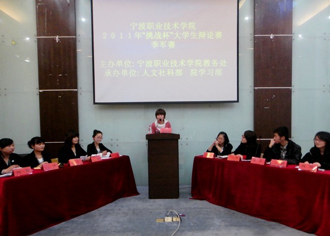 4月1日中午12点,由人文社科部和院学生会共同主办的大学生“挑战杯”辩论赛――外语系与工商管理系季军争夺战在明德楼105报告厅拉开帷幕。此次比赛特邀人文社科部周碧蓉老师、王恩妍老师、刘光艳老师和吴艳东老师担任评委。