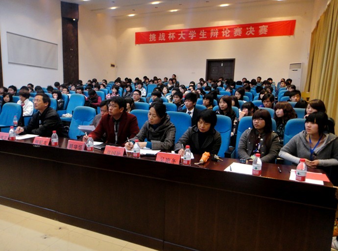 为了丰富我院大学生的课余生活,提升校园气氛,开拓学生思想,体现大学生朝气蓬勃、积极向上的精神状态,培养发掘辩论人才,提高阅读、试听、演讲、组织能力和团结协作能力。4月7日中午,由院团委主办、人文社科部承办的“挑战杯”大学生辩论赛总决赛在明德楼105报告厅拉开帷幕。院学工部部长郭华恬老师、教务处主任何明友老师、副主任黄伟文老师、人文社科部吴艳冬老师、张国艳老师作为评委出席了本次比赛。同时,电子信息工程系、机电工程系的党支部副书记、系主任作为观众也应邀出席了本次比赛。