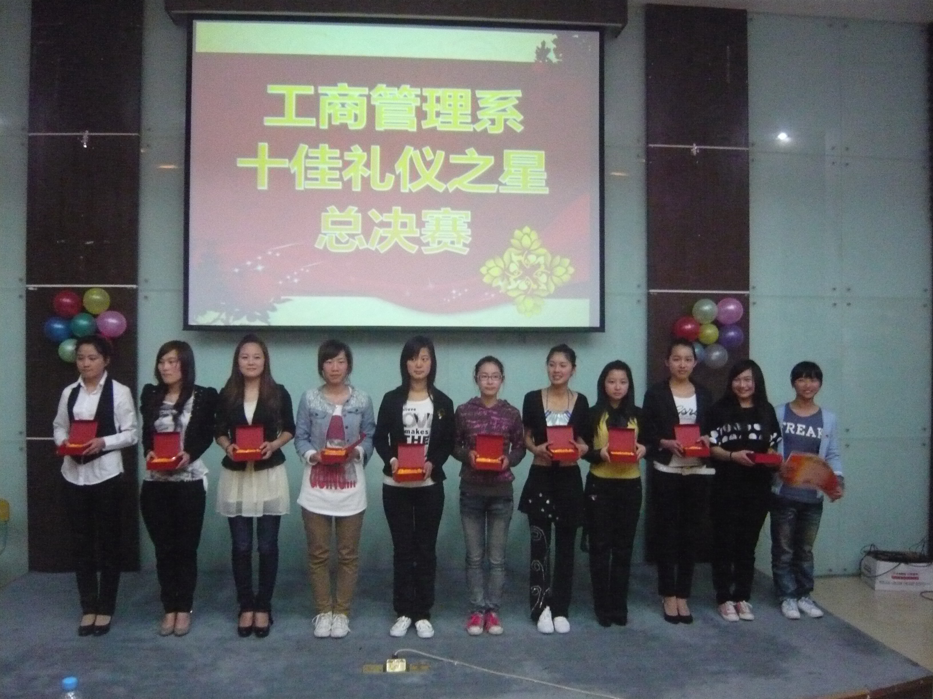 4月6日晚上,工商管理系十佳礼仪之星总决赛在明德楼105教室隆重举行。特邀学工部副部长徐莺老师、工商管理系团委书记陈茜茜老师、系辅导员李婷婷老师出席本次活动。