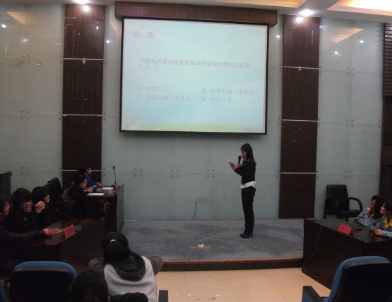 4月7日,晚上6:00,在明德楼105教室,电子信息工程系VS建筑系建党90周年知识竞赛拉开了预赛的帷幕,本次比赛围绕“党建设的理论体系和发展历程”为中心主题展开。本次比赛由宁波职业技术学院共青团委员会和院社科部共同举办。