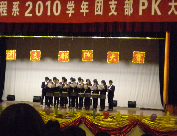 4月21日晚上5:30,东校区大剧院举办了电子信息工程系2010学年团支部PK赛。本次大赛由电子信息工程系分团委主办、电子信息工程系分团委组织部承办。本次大赛总共有14个班级参赛。电子信息工程系电子研究所所长、电子专业张溪老师、电子信息工程系工程系分团委书记陈姜帅老师、电子信息工程系团委陈利勇老师、电子信息工程系团委胡国伟老师、总院团委组织部部长黄一诺同学等担任本次大赛评委。