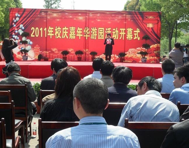 为了全面展示学院丰硕的办学成果,充分反映毕业生的职业发展成就,体现人才培养优势,整合社会、企业、校友资源,着力打造专业品牌,借资借智促进深层次发展,提升学院的社会影响力和学生就业竞争力,我院借此特别举行了以主题为“校庆周我们的节日”――宁波职业技术学院2011年“校庆周嘉年华”游园活动。4月26日上午9:30,校庆嘉年华游园活动开幕式暨北仑区非物质文化遗产进校园启动仪式在创业街大舞台隆重举行。北仑区文化广电新闻出版局副局长凌晓军,北仑区民间文艺工作者协会主席、北仑区文化馆馆长唐佩媚,院党委书记、执行院长苏志刚,副院长张学库,院党委副书记史习明,学工部部长郭华恬,院团委书记励宁等领导及嘉宾出席了本次开幕式。此外,我们还邀请了全市各行业能手,院校企合作领导和参加全国高等院校篮球联赛的选手和教练们。