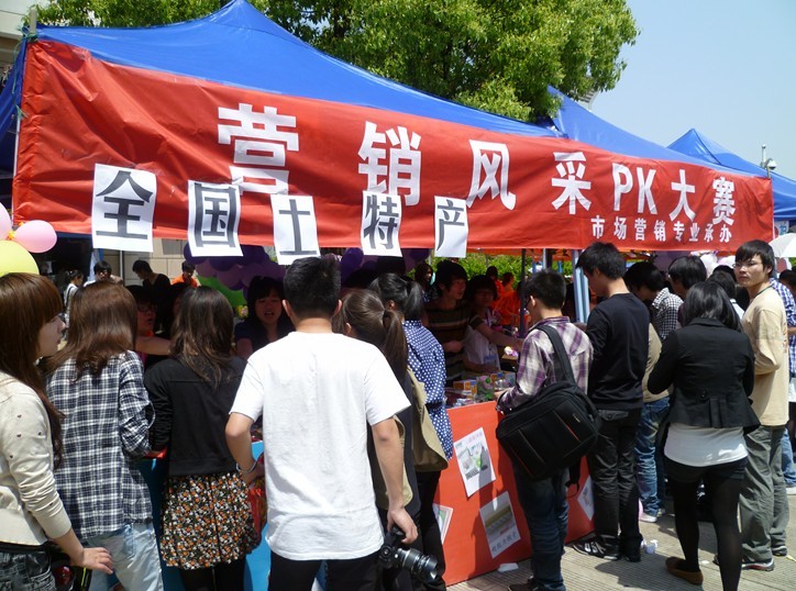 4月26日,为了积极响应校庆嘉年华游园活动的火爆气氛,我院9个系和学生会、社团联合会各个协会的很多销售团队在跳蚤市场进行商品展销活动。其中工商管理系的各商品大部分都是学生制作或是来自校企合作公司的产品,而各个店铺的展销产品一部分是来自本店,另一部分则根据校庆的要求提前采购的。