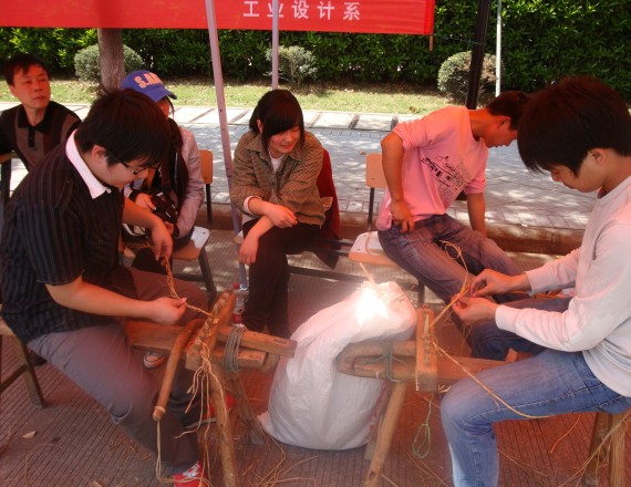 图为:浙江省的非物质文化遗产编草鞋摊位