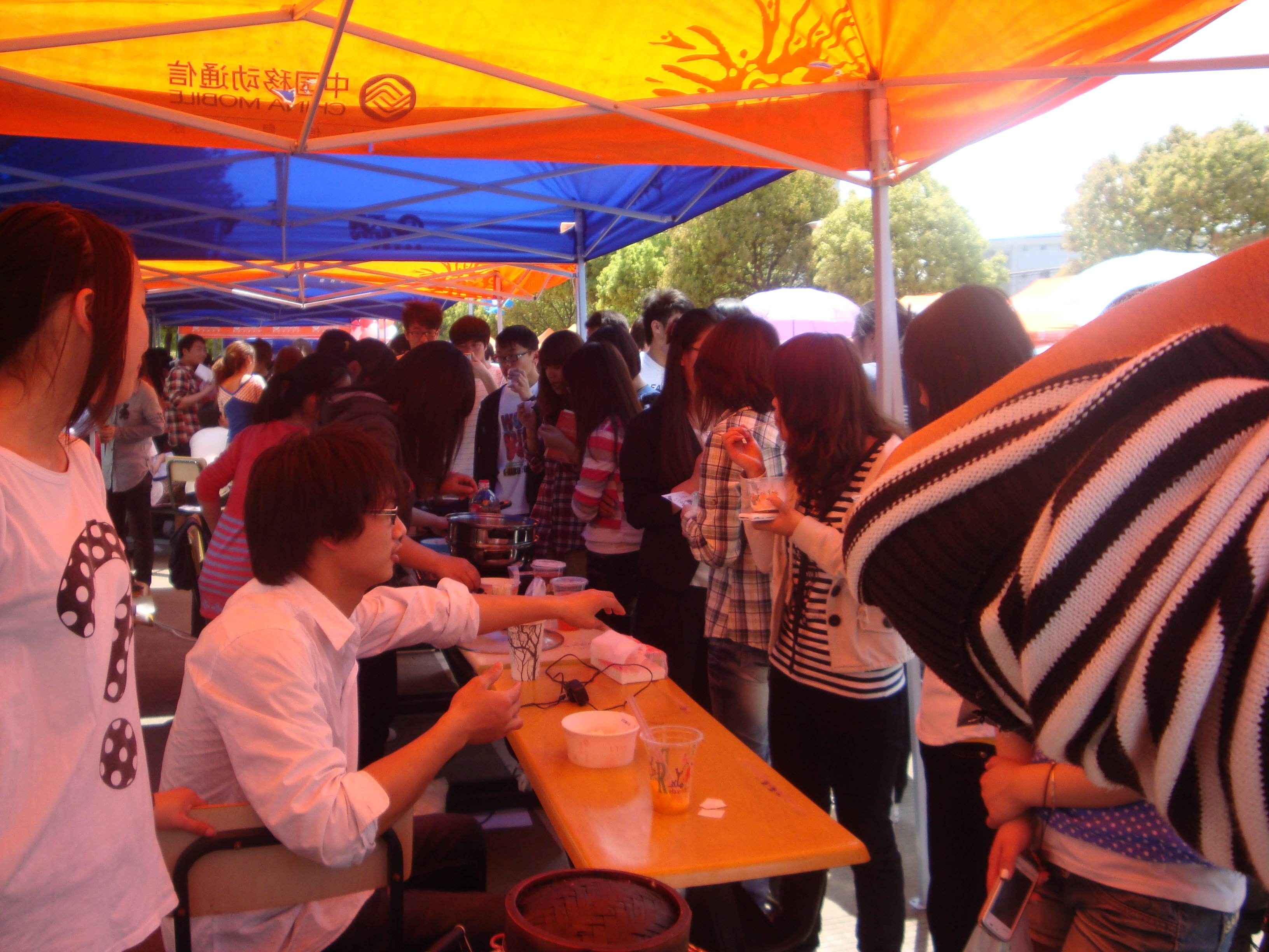 4月26日,宁波职业技术学院如火如荼地开展着一系列的校庆嘉年华活动。期间应用化工系根据自己的专业特色分别设立三个展区:化工小作品展销、专业特色展区、防辐射食品展区,尤其是在异国美食制作展区的防辐射食品更是取得火热的销售成绩。