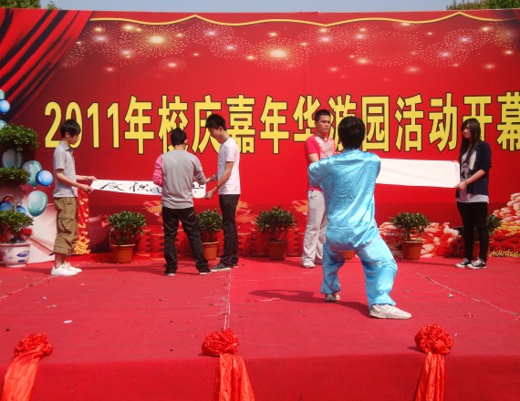 图为:太极、书法表演庆祝建党90周年