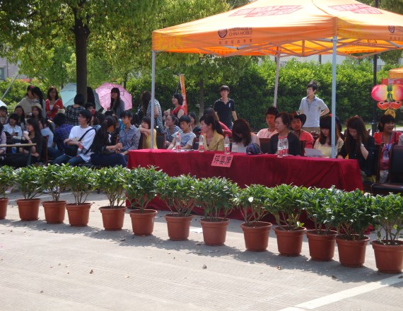 图为:现场的评委老师和观看的同学们