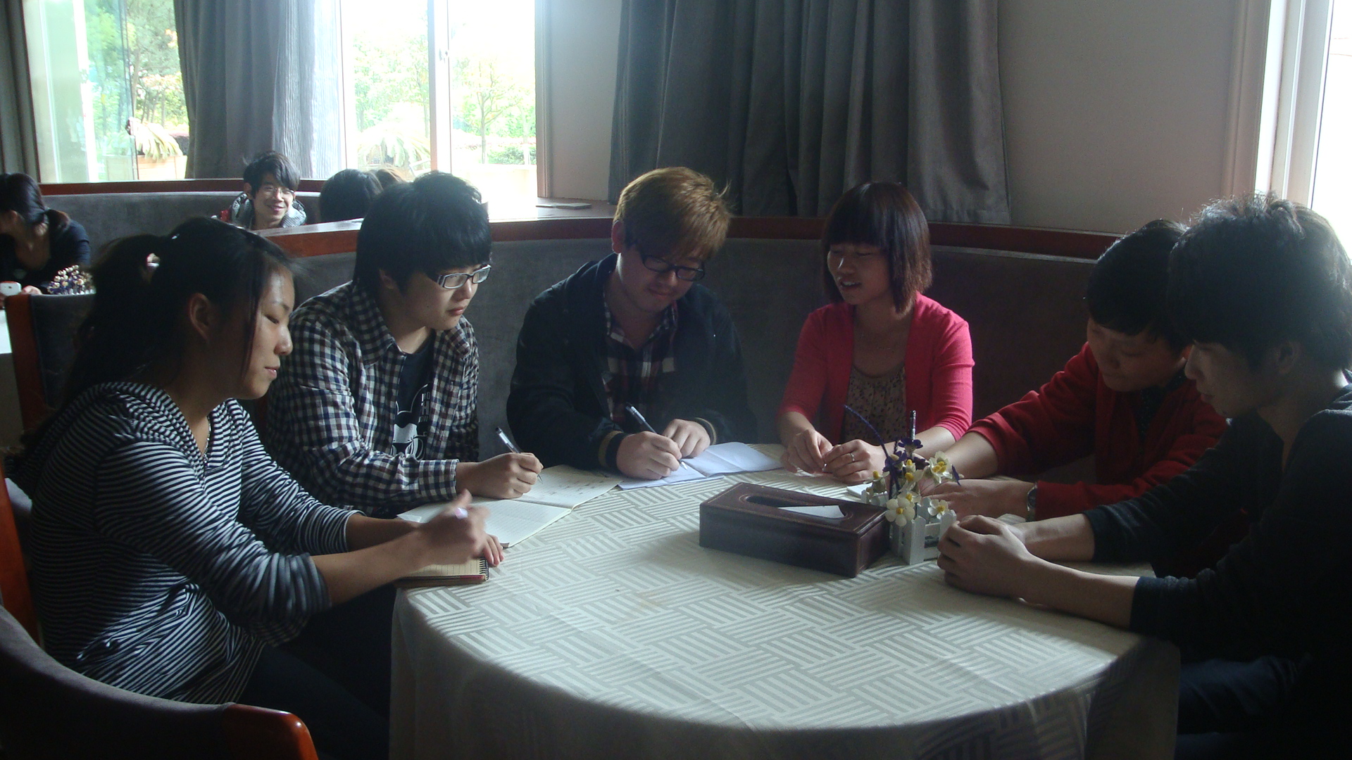 2011年,经过装修的行政楼正式更名为国贸楼,归属于国际商贸系4月(搬进国贸楼的日期),国际商商贸系第一次到属于他们的教学楼上课。4月29日,搬进国贸楼之后的完美的一次例会在Yummy Cafe召开了。中午12点20分,学生会每个部门的代表已经坐在了会议桌前,紧张而又期待的看着王萌萌老师,都在偷偷猜测英语例会的召开形式。“One day????”王萌萌老师说着一口流利的英语,语速轻柔微慢,用一个有意义的英语小故事拉开了例会的序幕。起初,还在紧张怕听不懂的同学,渐渐发现这些英语句子都是平时上课老师讲过的,并不像他们想象的一样难懂。当王老师讲完这个小故事的时候,大家都主动参与到探讨中来,不太成熟的英语,你一言我一语,气氛和往常开会一样活跃,未出现任何冷场的场面,一切的质疑都化作了泡影。