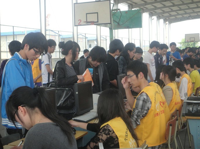 4月29日,2540名参加宁波职业技术学院自主招生的学生陆续来到我院。我院志愿者们以饱满的热情迎接了这些远道而来的学生和家长,在我院志愿者的帮助下,参加这次自主招生的学生们顺利地来到了风雨篮球场进行了入学考试现场确认。
