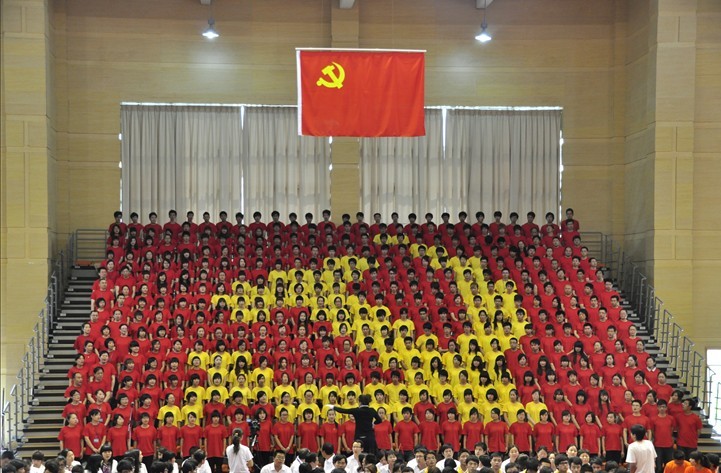 教工行政工会以饱满的热情,昂扬的旋律唱响了《没有共产党就没有新中国》这首不朽之作。每个系穿着统一,各具特色,特别是由工商管理系和电子信息工程系406位老师及同学组成的党旗的形状给全体师生留下了深刻的印象。“鲜花曾告诉我你怎样走过,大地知道你心中的每一个角落……,”工业设计系用悠扬的歌声唱响《同一首歌》,拉开了各系唱响红歌的序幕。随后,化工系歌曲《我们走在大路上》充满朝气,唱出了革命的激情,外语系带来的歌曲《让我们荡起双桨》令会场激荡着青春的音符,唱响了青年人的理想和信念、朝气与激情。一曲曲脍炙人口的经典歌曲回顾了中国共产党开创之时的过程与辉煌,将现场观众带回到那段激情燃烧的岁月,也唱响了青年人的心声与追求。