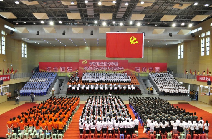 为喜迎中国共产党成立90周年,歌颂中国共产党的伟大历程和丰功伟绩, 使同学们牢记党的光荣历史,继承党的优良传统,推进“三思三创”主题教育实践活动,践行科学发展观。我院于5月19日在顾国华体育馆隆重举办了“红色旋律,唱响宁职”主题红歌会。