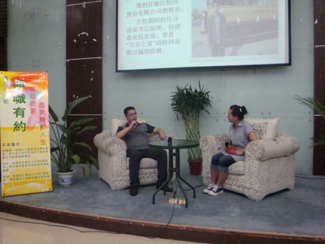 图为:主持人对厉海涛学长进行访谈