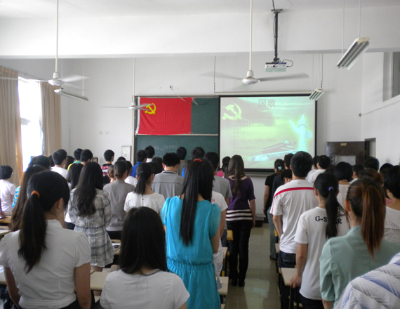 图为:入党积极分子、预备党员、党员齐唱国歌