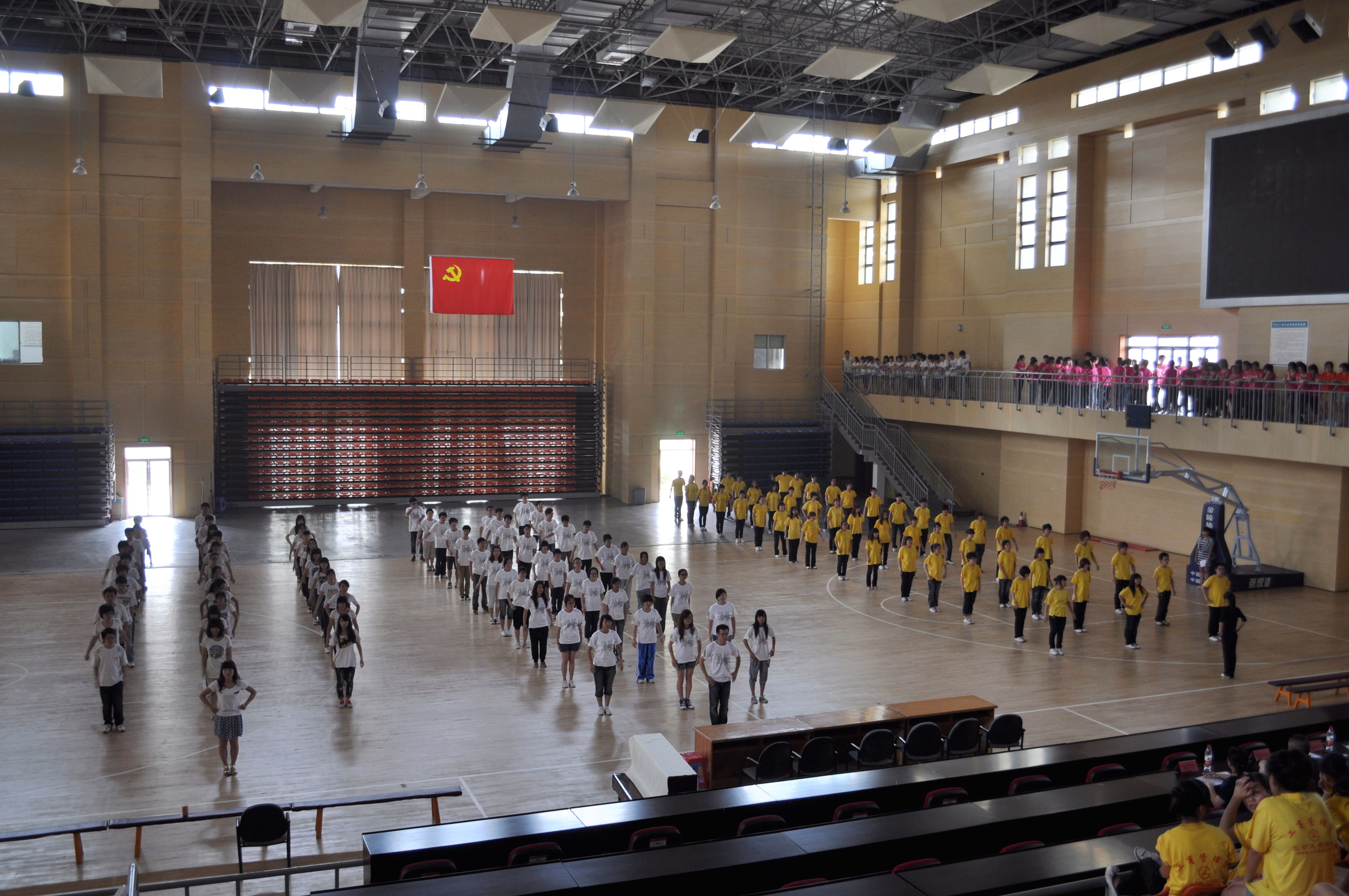 为了充分贯彻体现“每天锻炼一小时,幸福生活一辈子”的健康体育理念。6月9日中午12点20分,工商管理系于顾国华体育馆举行了一次以“舞动青春”为主题的广播操比赛。担任此次广播操比赛的评委有工商管理系党总支书记裘腰军老师、工商管理系党总支副书记龚友国老师、军体部副主任孙雪培老师以及工商管理系团委书记陈茜茜老师。