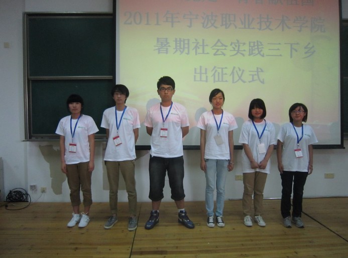 为了更好的贯彻落实科学发展观,积极实践“文化、科技、卫生”三下乡活动,同时为丰富我院学生的暑期实践活动,提高学生的实践能力。我院于6月30日在精技楼503室,隆重举行了以“永远跟党走,青春献祖国” 主题的2011年“三下乡”暑期社会实践出征仪式。北仑团区委书记袁波、副书记包培红、中国人寿保险总经理助理张勇、我院学工部部长郭华恬、9各系党支部副书记、团委书记励宁、团委干事胡丹莹、任婕及9各系团委书记应邀出席。