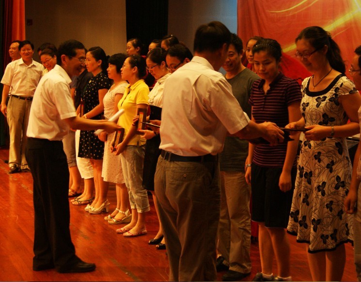 会议伊始,我院副院长张学库宣读获表彰名单,并先后颁发了宁波市先进个人、校级先进个人、教学优秀奖等多个奖项。随后,学生向从事教育工作30年以上的三位老师献上花束,沈老师以自己30多年的教学经历发表了“做教师是个苦差事,当老师真幸福,老师最需要责任心、事业心”的感言。