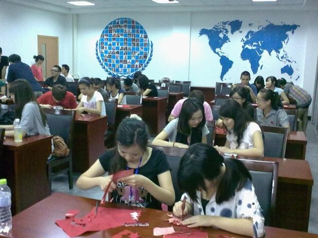 为感受中华传统艺术,传承民间文化。9月10日,在中秋节来临之际,我院社团联合会各协会成员在院外语楼为台湾大学生北仑夏令营的学生们开展非物质文化遗产课程。其中包括有书法协会的书法学习、剪纸协会的剪纸文化及越剧协会的戏曲演绎。