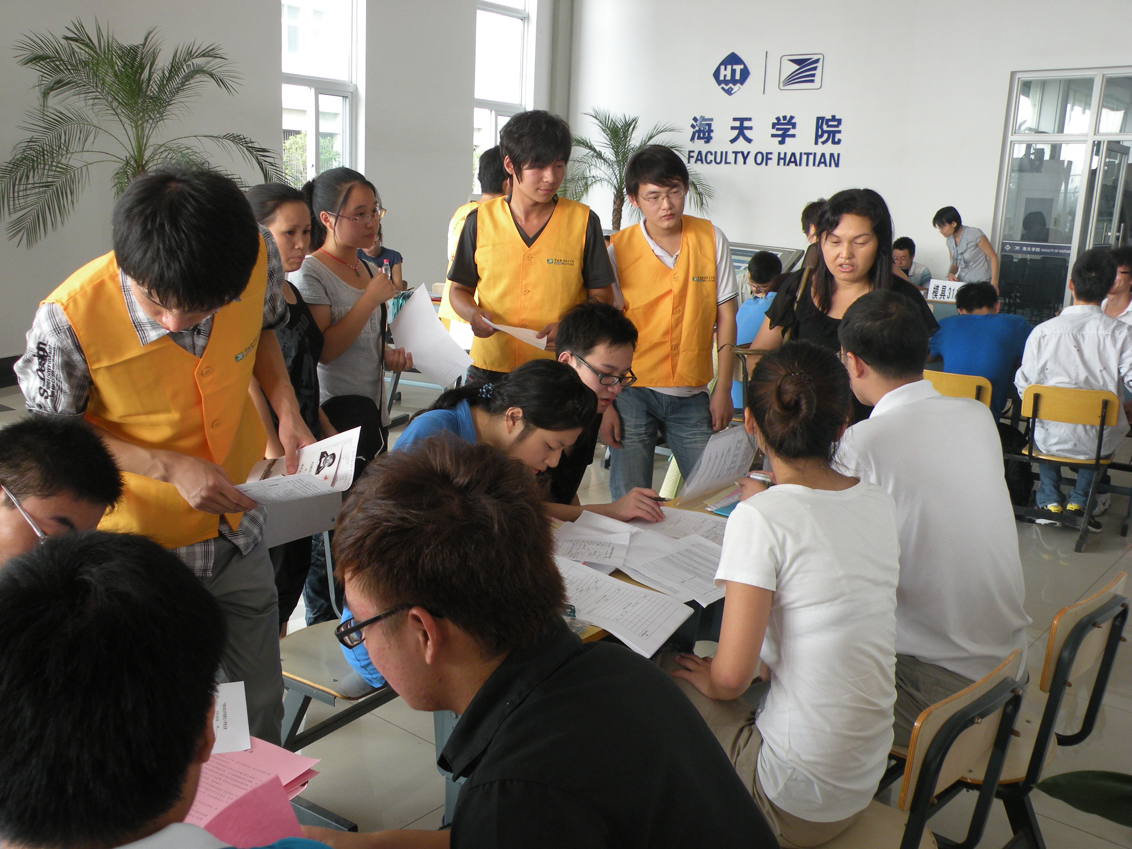 2011年9月17日, 全国各地的新生陆续来到学校进行报到。鉴于这种情况海天学院迎新工作者们便各尽其责早早开始部署,让到来的新生感受到家的温暖。