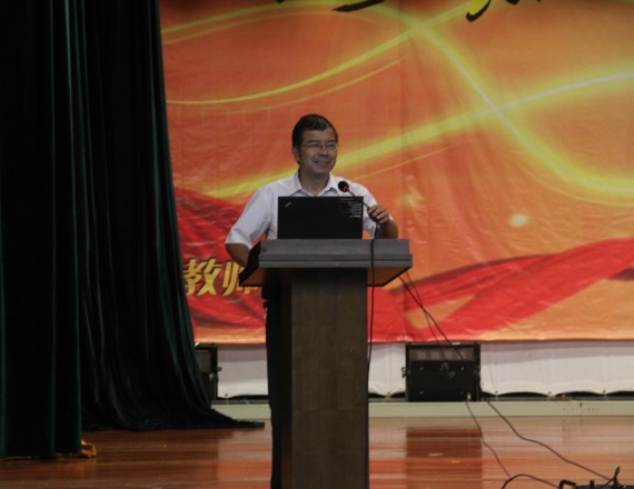 图为:电子信息工程系吴志荣讲话