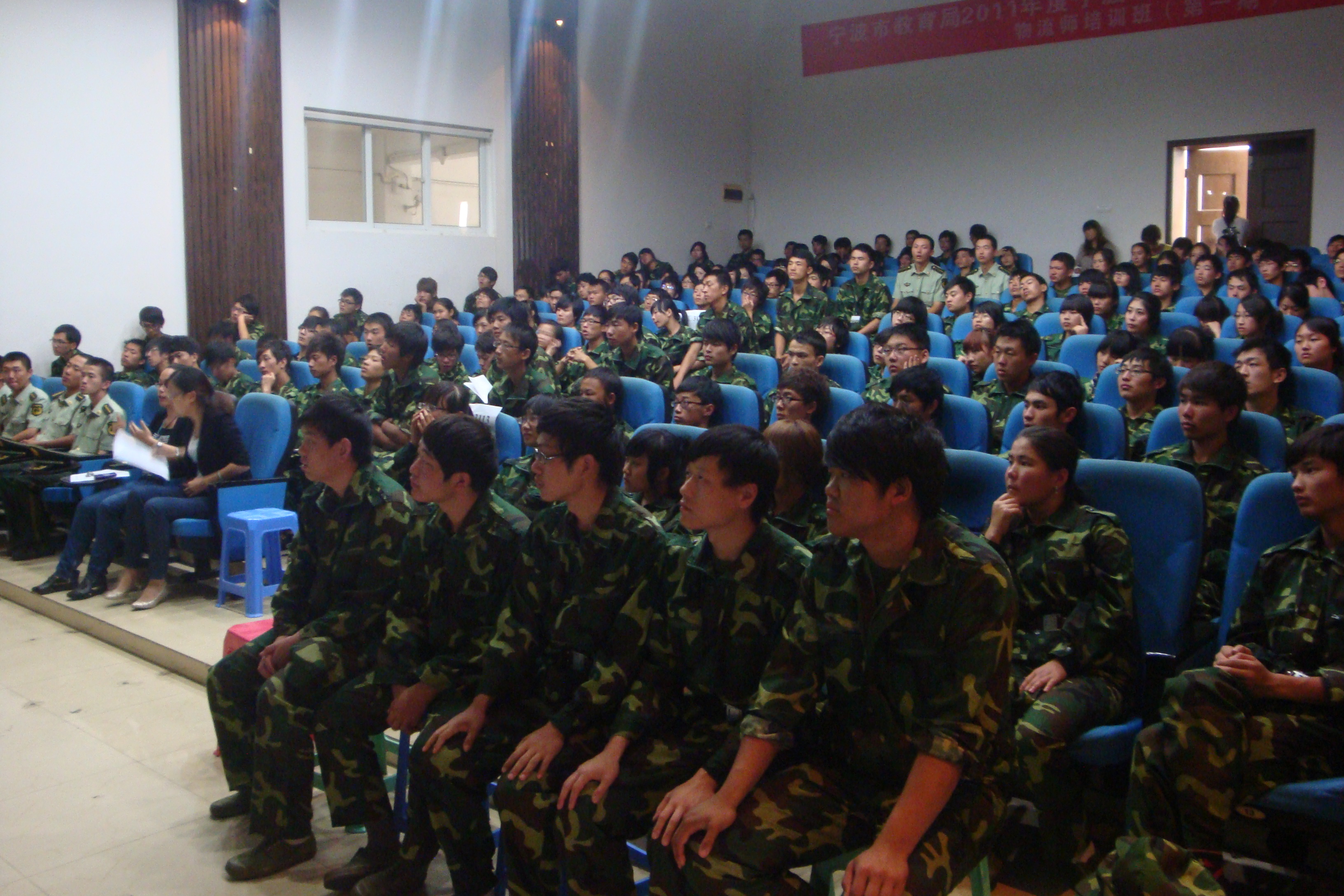 2011年9月19日上午,应用化工系2011级新生专业教育大会在1103教室举行。化工系系主任陈亚东老师、副主任朱建华老师、党总支书记徐帆老师、教研室主任彭振博老师和副主任汤晓老师等参加了此次会议,与会的还有化工系身着军训装的全体大一新生和教官。
