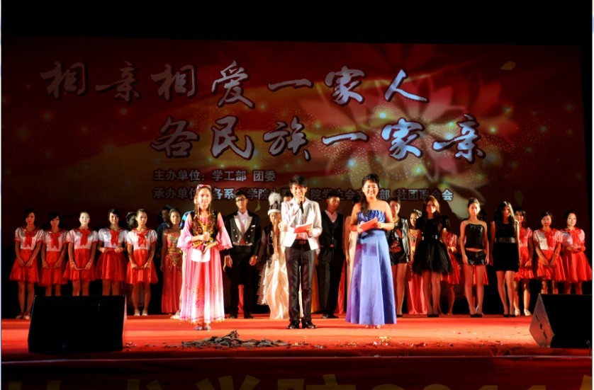 9日28日晚,为欢迎2011级新生的到来,院学工部、院团委共同举办了主题为“相亲相爱一家人,各民族一家亲”的文艺晚会。出席本次晚会的领导有院党委副书记史习明、学工部部长郭华恬,以及8各系党总支书记、党总支副书记、团委书记。