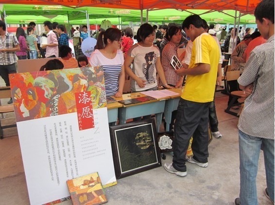 近年来,随着我院对非物质文化遗产的继承和发展,我院已相继成立剪纸、茶艺、书法等非遗工作室,受到了广大师生的关注。招新期间,各个“非遗社团”也是尽展“非遗”魅力。作为社团联合会新生社团的舞龙社团不仅在院迎新表演中颇具亮点,在本次招新过程中也是大力宣传,将舞龙民族精华展现的淋漓尽致。同样作为新生社团的根雕协会也是独树一帜,根雕协会成员从象山德和根艺美术馆“竹根雕”传承基地学习实践,活动现场将一件件精美的根雕作品,尽显出根的艺术之美。另外,典雅古朴的茶艺协会、清悠婉丽的越剧协会、恢弘大气的书法协会等10余个“非遗”协会都受到同学们的喜爱。