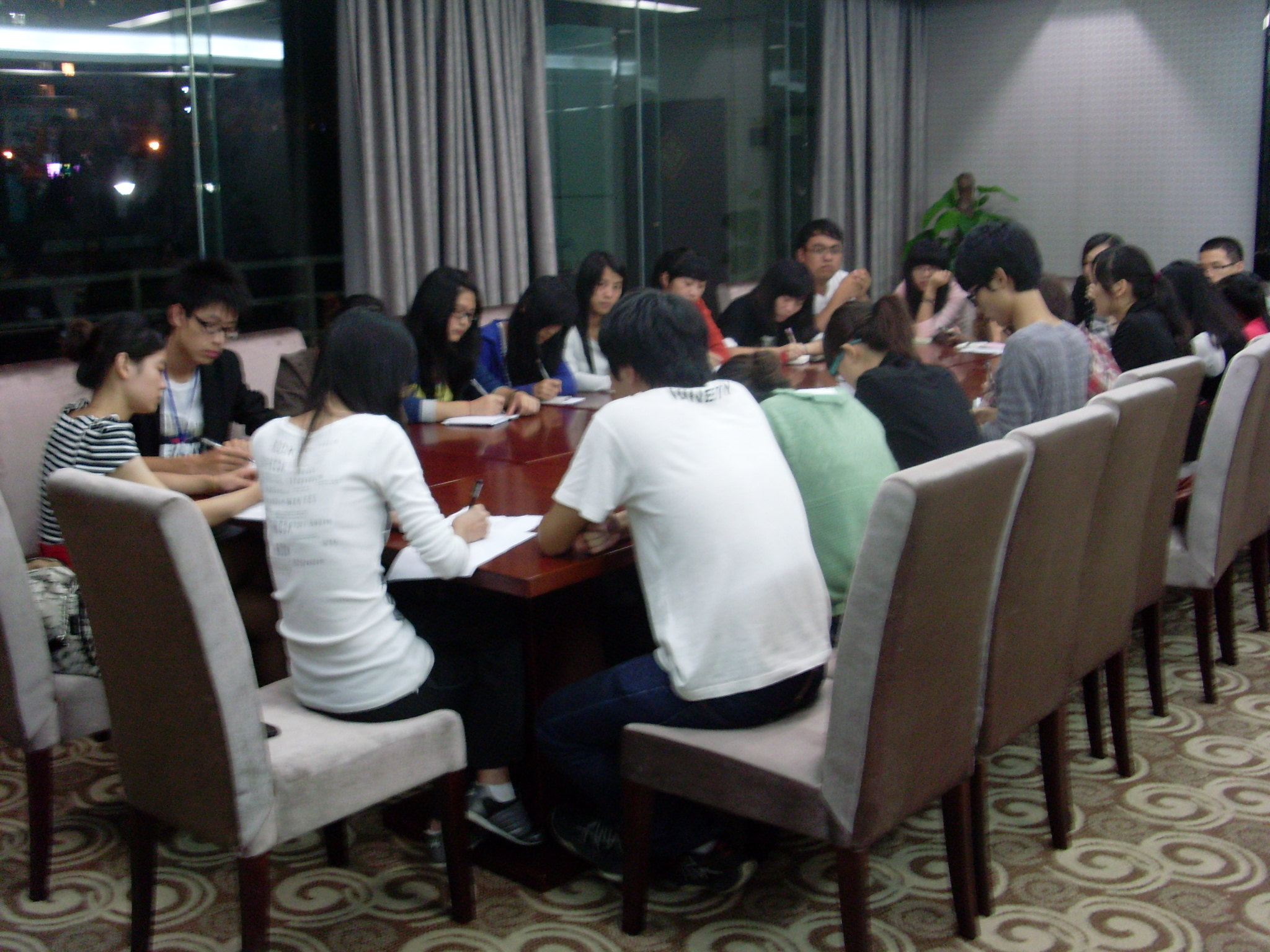 图为:团学例会各位干事认真聆听老师讲话