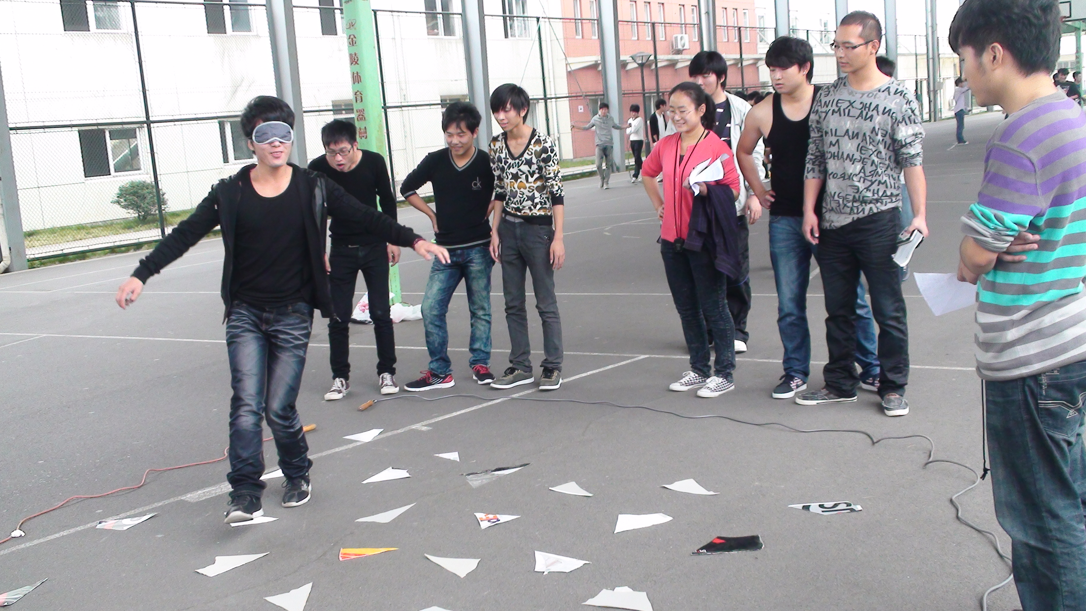 图为:海天学院学生在踩地雷游戏