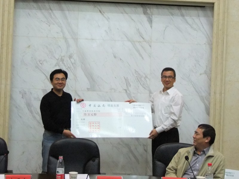 为了激发同学们今后在顶岗实习中创新进取的精神,两家企业分别对大风班和江宁班出资3万元设立作为奖学金,史习明书记代表学院接受了两家企业捐赠。