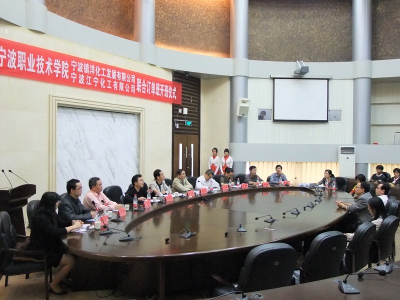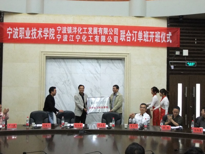 宁波镇洋化工发展有限公司、宁波江宁化工有限公司都是浙铁投资集团下化工板块中核心产业突出、具有强劲发展势头的现代化大型化工企业。联合订单班的设立不仅能为企业培养出量身定做的实用型、技能型高级应用人才,也能为学院教学落实就业导向、提升人才培养质量、解决人才供需矛盾开辟有效途径。