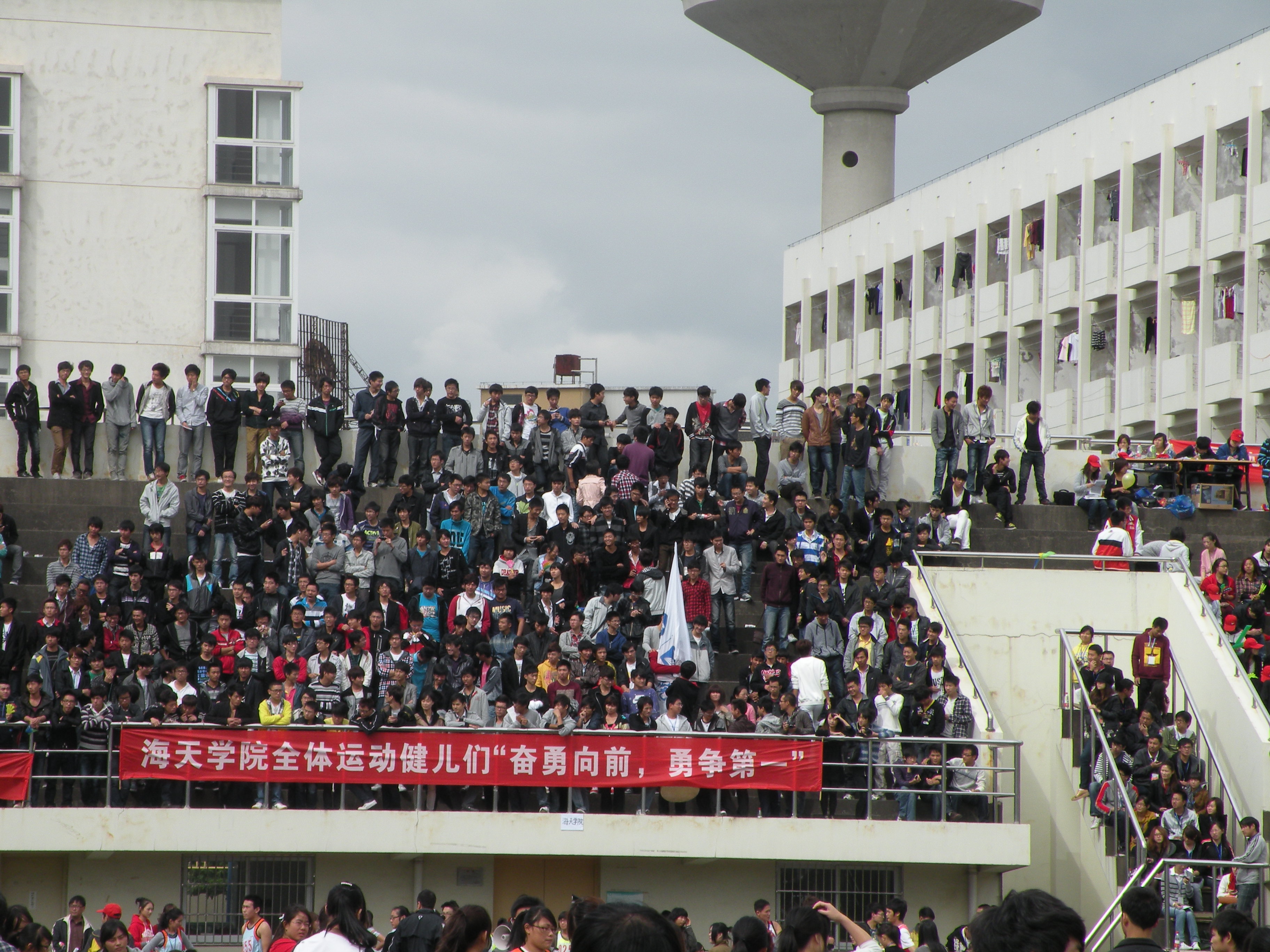 图为:看台上给运动员加油的海天学院同学