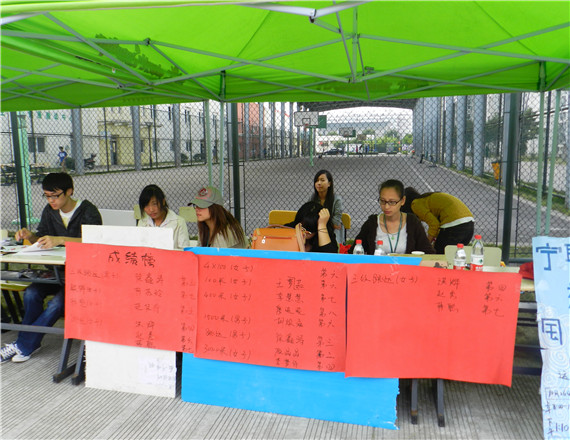 国际学院后勤服务小组由国际学院志愿者部,信息中心,外联部,学习部,专业部,纪检部有关人员组成。服务小组集体设立了一个服务站,每天个部门成员轮流值勤,为运动员提供适时的服务。不论是冷风刺骨的清晨还是烈日爆晒的中午,他们始终坚守在自己平凡的岗位上,用自己的的双手为运动员尽上一分力。当问到一位后勤工作的同学时,他说:“我们能做的就是为运动员提供运动服,及号码牌,并带去检录处,运动员比赛完,我们就要上去给他送上营养液和温水,如果运动员感到紧张,我们会按摩帮他们缓解焦虑与不安。”当问到他们对自己在后勤工作而不能到前台观看比赛的看法时,他们不约而同的说:“我们是为同学服务的,我们热爱这种幕后工作”!