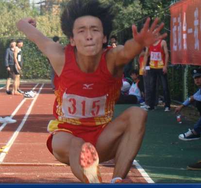 操场的一角,三级跳远正在有序安静的进行着。由于场地远离开看台,所以除了一些陪同运动员的工作人员外,没有什么观众为运动员们加油助威。当315号运动员起跳,助跑,起跳,有力的弹跳,跃进沙坑,跳出13.23米,顿时三级跳远场地一片喝彩声,这个距离让他成为了第十三届运动会三级跳远的冠军,他就是建筑系的王旭荐同学。比赛结束后,当他被同学表扬取得好成绩时,他说道:“这都是我一直坚持训练的结果,在以后我应该做的更好。”有着实力却不骄傲的他,在27日的跳远比赛中又有了很好的表现,再次站上了最高领奖台。