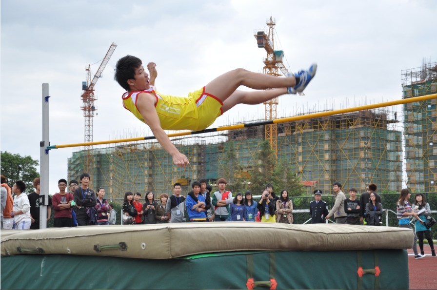 在26日下午的男子跳高决赛中,来自国际商贸系的杨仁榆同学并非接受过专业训练的跳高选手,也不会“背跃式跳高”,以至于他的跳跃方式与别的选手全然不同,基本是在起跳点原地起跳的。他以惊人的弹跳力令在场的所有师生折服,但是由于杨同学未接受过专业训练,当杆子到达一定高度的时候,他便心有余而力不足了,但是他没有放弃,不断地调整自己的过杆姿势,一次次地挑战新的高度,虽然最后并未取得理想的成绩,但是他挑战了自己,为自己画上了闪亮的一笔。最后,工商管理系翁龙同学荣获男子跳高决赛第一名、海天学院张浩同学荣获第二名、国际商贸系雷瑞环同学荣获第三名。