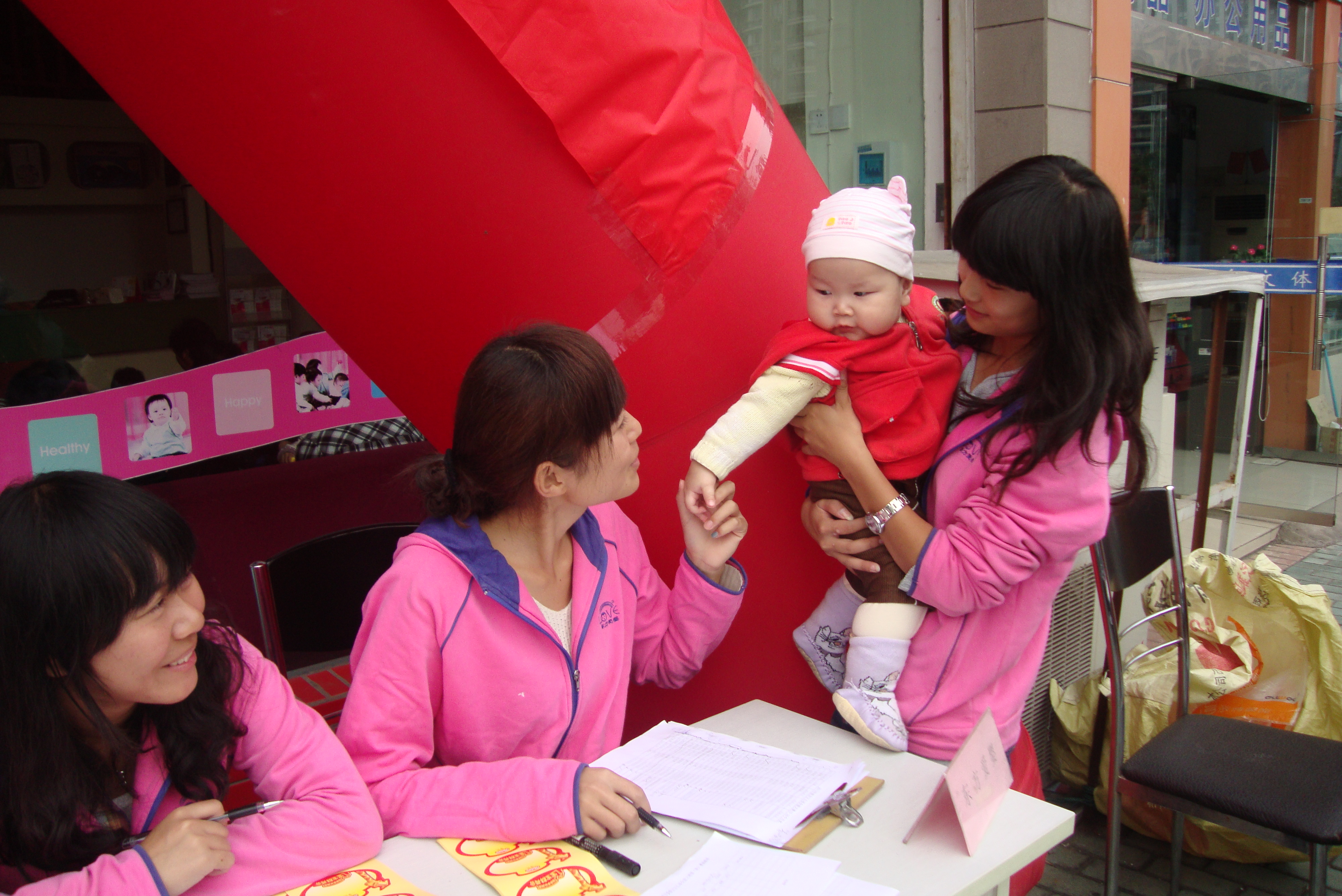 图为:志愿者和小宝宝的亲密接触