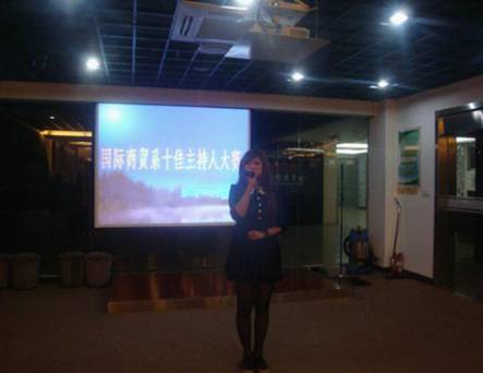 11月15日晚上6点,虽然气温较白天降低了不少,但同学们的热情不减反增,国际商贸系十佳主持人大赛在国贸楼咖啡吧正式开始。本次大赛共有18名选手报名,最后有十位选手赢得十佳主持人称号。其中前五名将代表国际商贸系参加宁波职业技术学院2011年十佳主持人大赛。