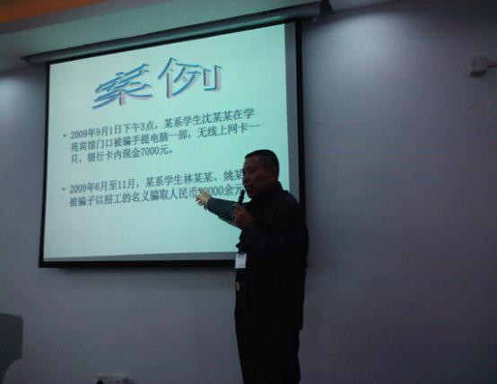 安全是生命之本,安全是头等财富。11月14日中午12点15分,国际商贸系在国贸楼举行了一场与学生安全密切相关的安全教育讲座。此次讲座由国际商贸系党总支副书记袁建萍主持,后勤服务中心主任高维彪老师主讲,各班班长,团支书,安全信息员,各寝室寝室长参加了本次安全教育讲座,受益颇多。