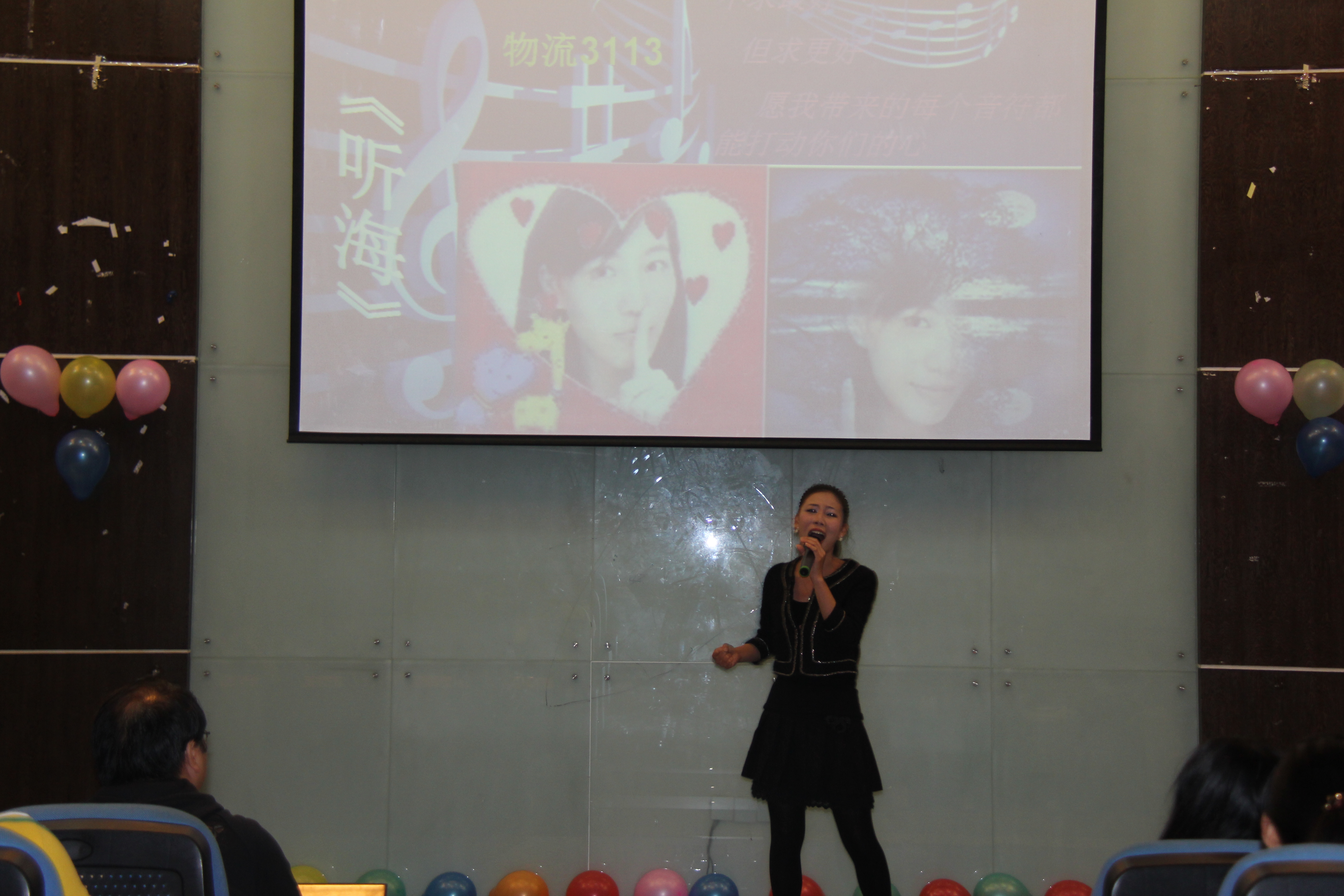 偌大的105教室内座无虚席。脱颖而出的15名决赛选手各个表现不凡,从R&B到中国风,从自然清新到摇滚的多元化,选手们为观众呈现了一场绚烂多彩的视听盛宴。比赛在一首王菲的《催眠》中正式拉开帷幕,作为第一个上场的选手,来自营销3111班的李适时以她富有磁性的嗓音、独具特色的舞台表现魅力,赢得全场掌声。陆紫琼同学一如既往地选择了来自苏打绿的歌曲,《无与伦比的美丽》令人陶醉。在本次决赛中,英文歌曲成为了选手们的首选。王瑞雪的《To be loved》和杜江南的《The day you want away》,成功点燃全场观众热情,将晚会带入第一个高潮。随后出场的选手们演唱渐入佳境,比赛呈现白热化状态。《小冤家》、《听海》、《花的嫁纱》,三首完全不同风格的歌曲,给观众们带来全新的视听享受。