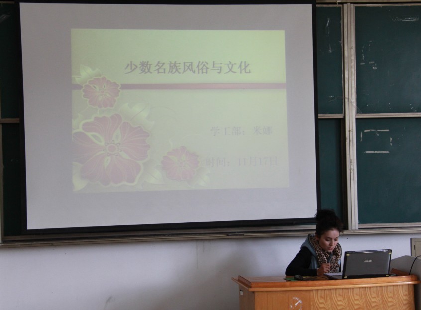 11月17日下午,在明德楼103室,我院学工部米娜老师做了以“少数民族风俗与文化”为主题的专题讲座。讲座中,米娜老师提出,新疆的风俗习惯之所以区别于其他民族主要受传统经济,生产方式、宗教信仰、语言文字以及地域分布这四个方面的影响。米娜老师就少数民族具体的风俗习惯做了进一步的阐述。