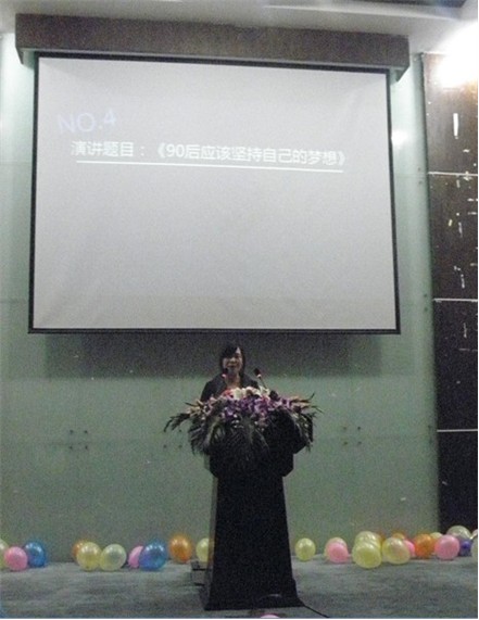 此次演讲比赛采取脱稿演讲的方式。第一位上场的同学是来自计算机3113的黄珊珊同学,她的演讲题目为《我骄傲,我是90后》,她用激扬的声音向各位观众阐述了90后的心声,以乐观向上的文字向世人们表述了我们90后不是一群平庸之辈,我们是新一代的天之骄子!第四位上场的通信3100班黄珊珊同学的《90后我们应该坚持自己梦想》的稿子,她通过讲述90后孩子的童年和他们祖辈父辈们的生活的不同之处,感慨我们90后的孩子是多么幸福,道出不论风多狂,雨多大,我们都要选择坚定的仰望梦想的天空的真理。这是对梦想的坚持,也是对自己的坚持,因为我们是90后的骄傲。这段演讲将全场气氛带到了高潮,同学们热烈的掌声此起彼伏。在座的老师脸上也露出了满意的笑容。