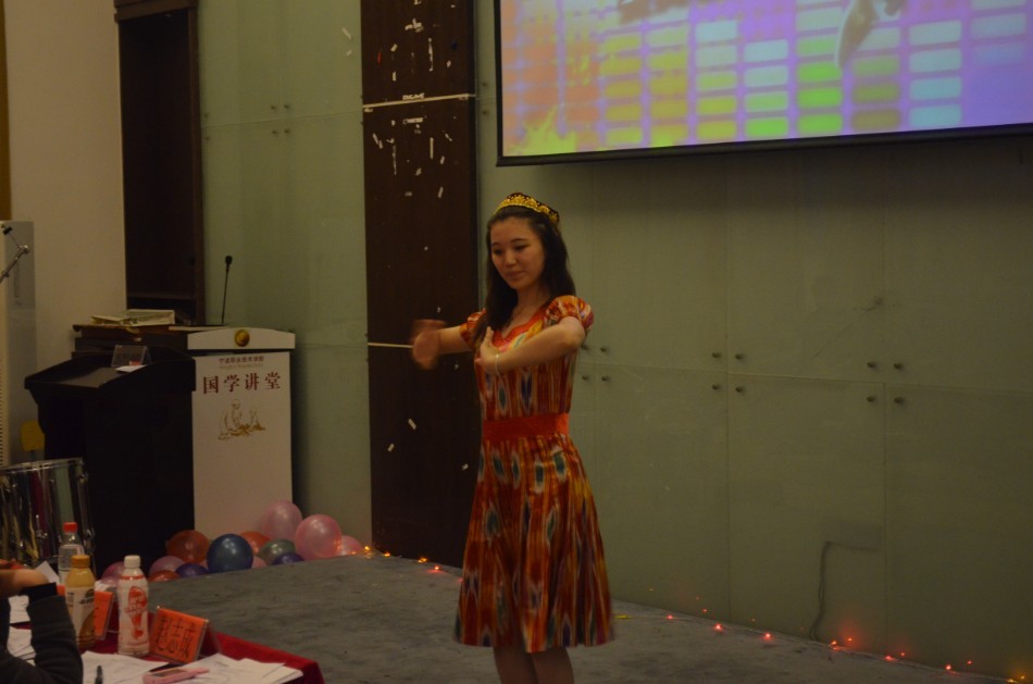 接下来的挑战赛共有5位同学参加,相比于先前的复赛挑战赛的选手们多数采取唱歌的比赛方式。最后上场的新疆选手夏依但给我们带来了一段极富有新疆特色的舞蹈《达坂城的姑娘》,优美的舞姿和灵动的身体给现场观众带来了视觉上的享受。据了解,夏依但曾获奖无数,是名副其实的达人。她曾赴台湾参加管乐并获得第二名,连续两届获得北京市艺术大赛舞蹈类一等奖,声乐类二等奖,新疆高中班演讲比赛二等奖,还参加过人民大会堂华人乐团出场演出,获得北京市民乐比赛一等奖,更曾参加了2011年中央电视台春节联欢晚会。