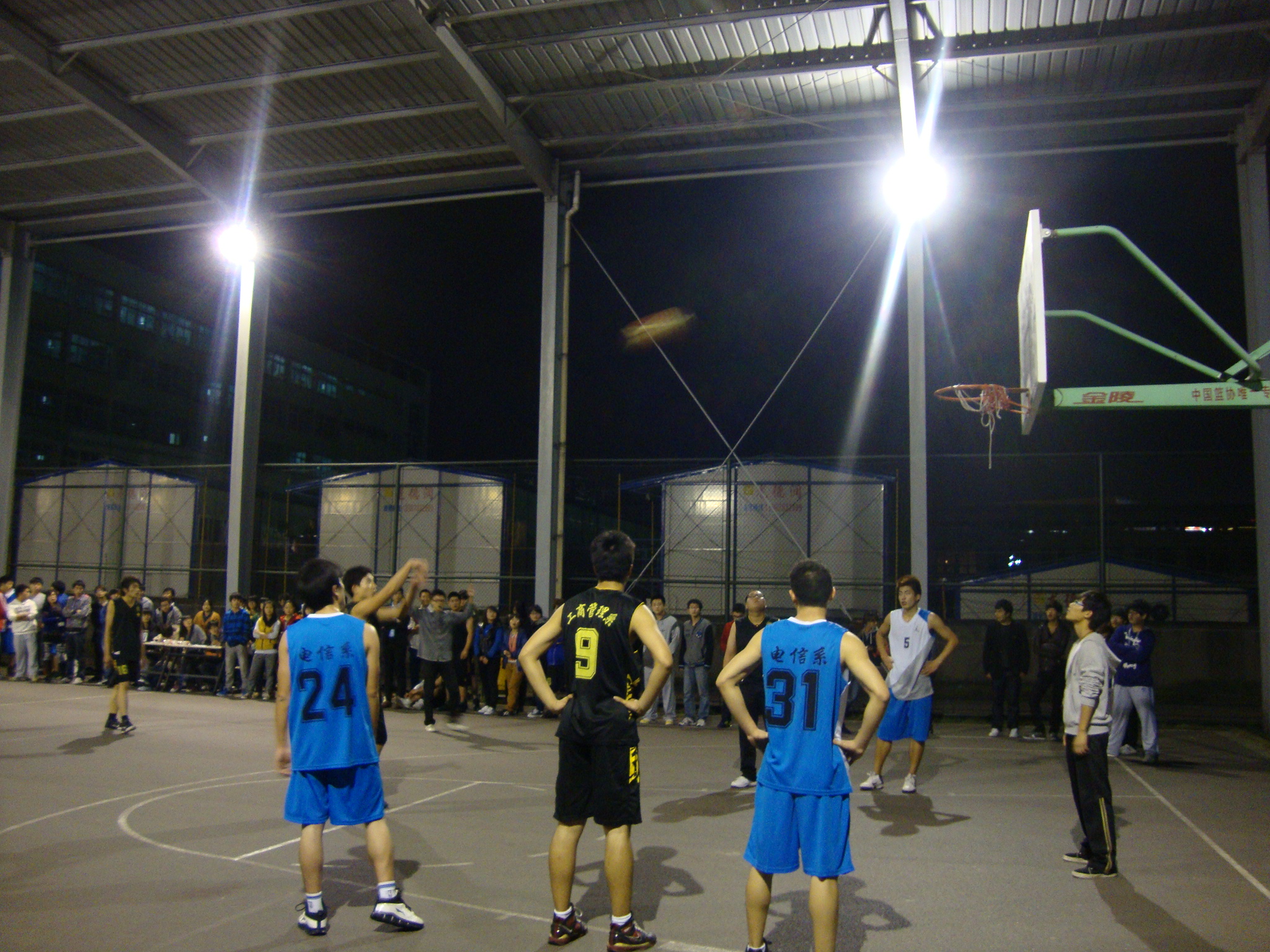 为了丰富学生校园文化生活,提高学生参与体育锻炼的积极性。11月21日晚上7点30分宁波职业技术学院“迎新杯”篮球赛首场比赛――工商管理系对阵电子系于风雨篮球场正式拉开帷幕。