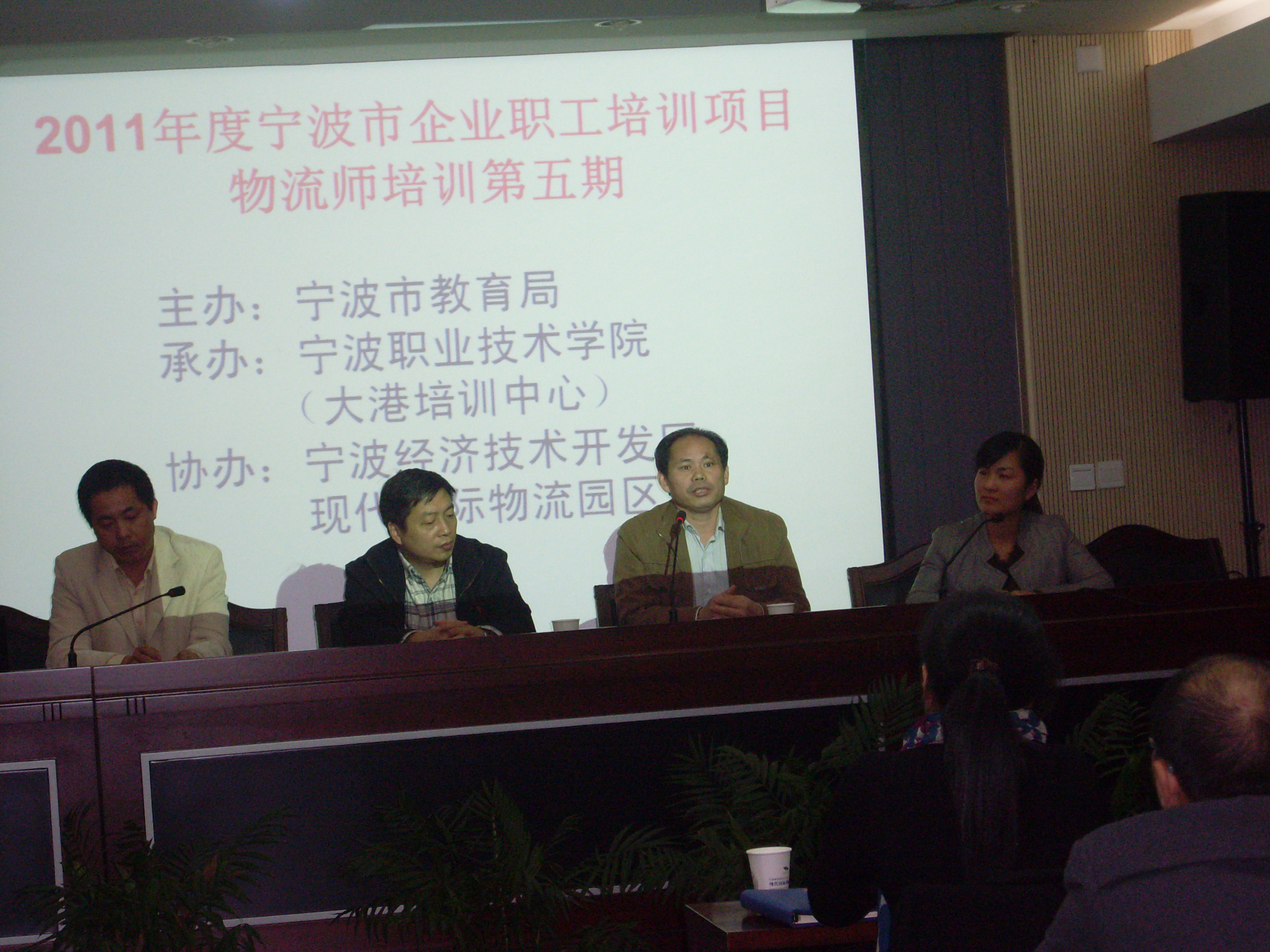 为了培养宁波市优秀的物流专业职工,提高员工职业素养。由宁波市教育局、宁波职业技术学院、宁波经济开发区现代物流开发区共同举办为期6天的“2011年度宁波市企业职工培训项目物流师培训”于11月21日至11月26日在宁波市经济技术开发区现代国际物流园区正式落下帷幕。本次培训课特别邀请到工商管理系副主任刘春朝老师担任主讲,宁波市各大物流有限公司共40余名员工参与此次培训。