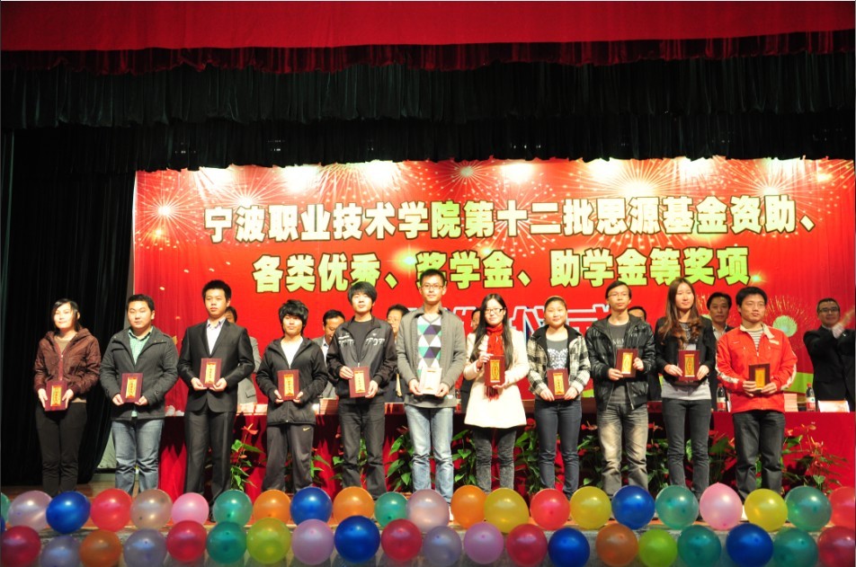 11月24日下午,我院第十二批思源基金资助、各类优秀、奖学金、助学金等奖项的颁发仪式在东校区大剧院隆重举行。北仑区慈善总会副会长张昌华,宁波丰海投资有限公司董事长陈晓锋,宁波经济技术开发区龙盛航运有限公司总经理助理曹健康,浙江省理想慈善基金会秘书长戎启平,我院党委书记苏志刚,副院长张学库、张慧波,党委副书记史习明出席了仪式并颁奖。