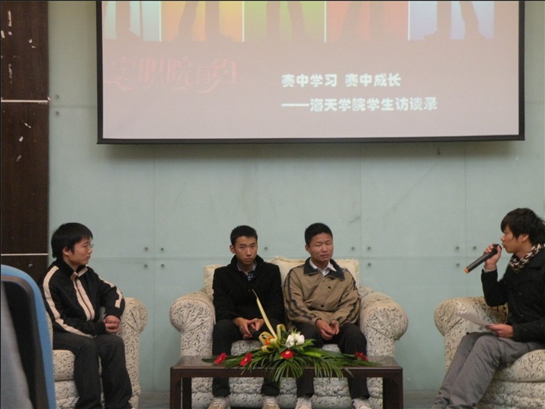 最后,在同学们热烈的掌声中落下了帷幕.通过本次访谈同学们都“吊起了”参加学院各种技术比赛的热情,也懂得了“赛中学习,赛中成长”的真谛。希望海天学子们在各种技术大赛中留下“光辉岁月”。